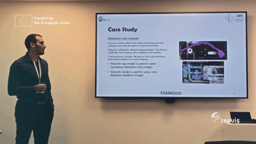 The JARVIS project was proudly featured at ESAIM2025 – the 3rd European Symposium on Artificial Intelligence in Manufacturing. The JARVIS team presented the latest research on a deep learning-based robot perception system, developed to support high-precision automotive battery assembly.